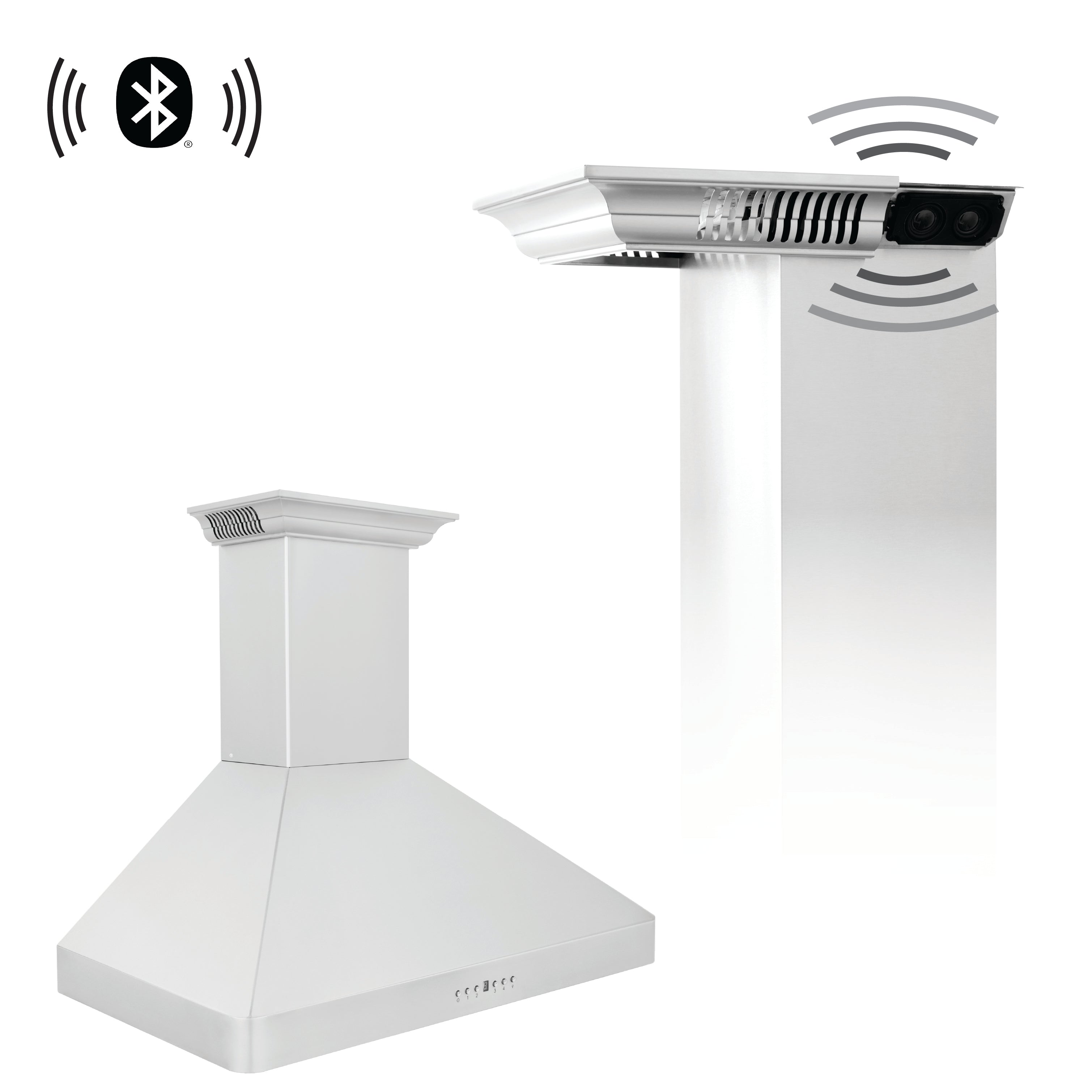 30" ZLINE CrownSound™Ducted Vent Wall Mount Range Hood in Stainless Steel with Built-in Bluetooth Speakers (KF2CRN-BT-30)