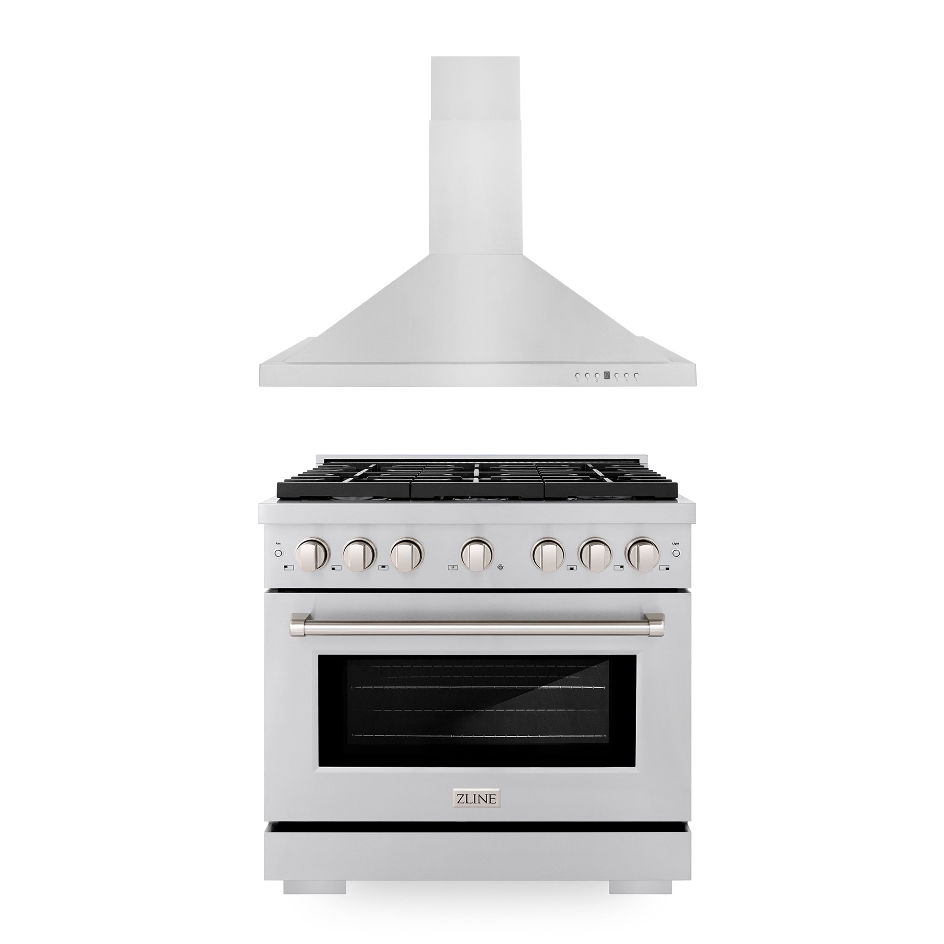 ZLINE 36" Kitchen Package with Stainless Steel Gas Range and Convertible Vent Range Hood (2KP-SGRRH36)