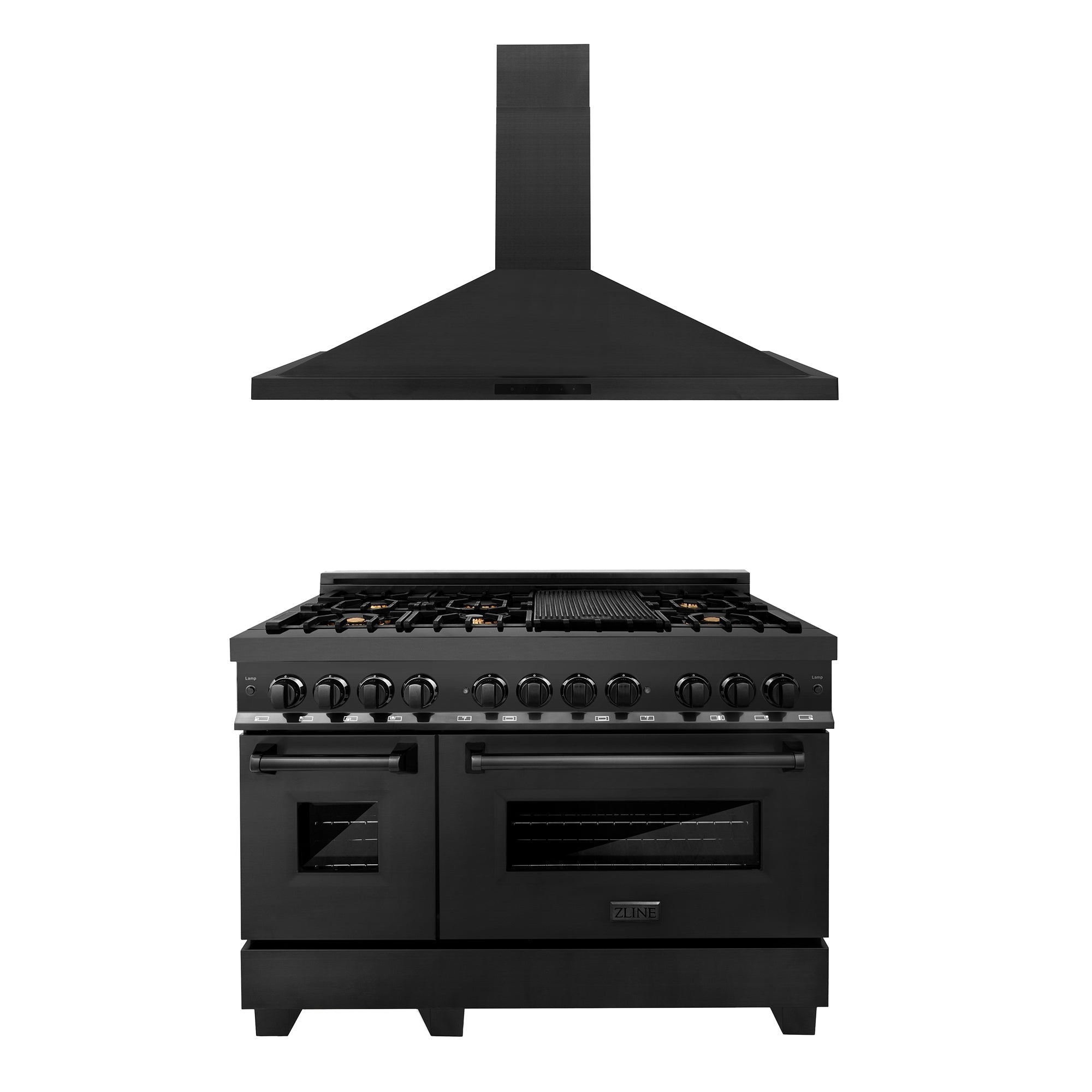 ZLINE 48 in. Kitchen Package with Black Stainless Steel Dual Fuel Range and Convertible Vent Range Hood (2KP-RABRH48)