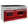ZLINE 60 in. 7.4 cu. ft. Legacy Dual Fuel Range with 9 Burner Gas Cooktop and 2 Electric Convection Ovens in Satin Stainless Steel and Red Gloss Doors (RAS-RG-60)