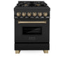 ZLINE Autograph Edition 24 in. 2.8 cu. ft. Legacy Dual Fuel Range with 4 Burner Gas Cooktop and Electric Convection Oven in Black Stainless Steel and Champagne Bronze Accents (RABZ-24-CB)