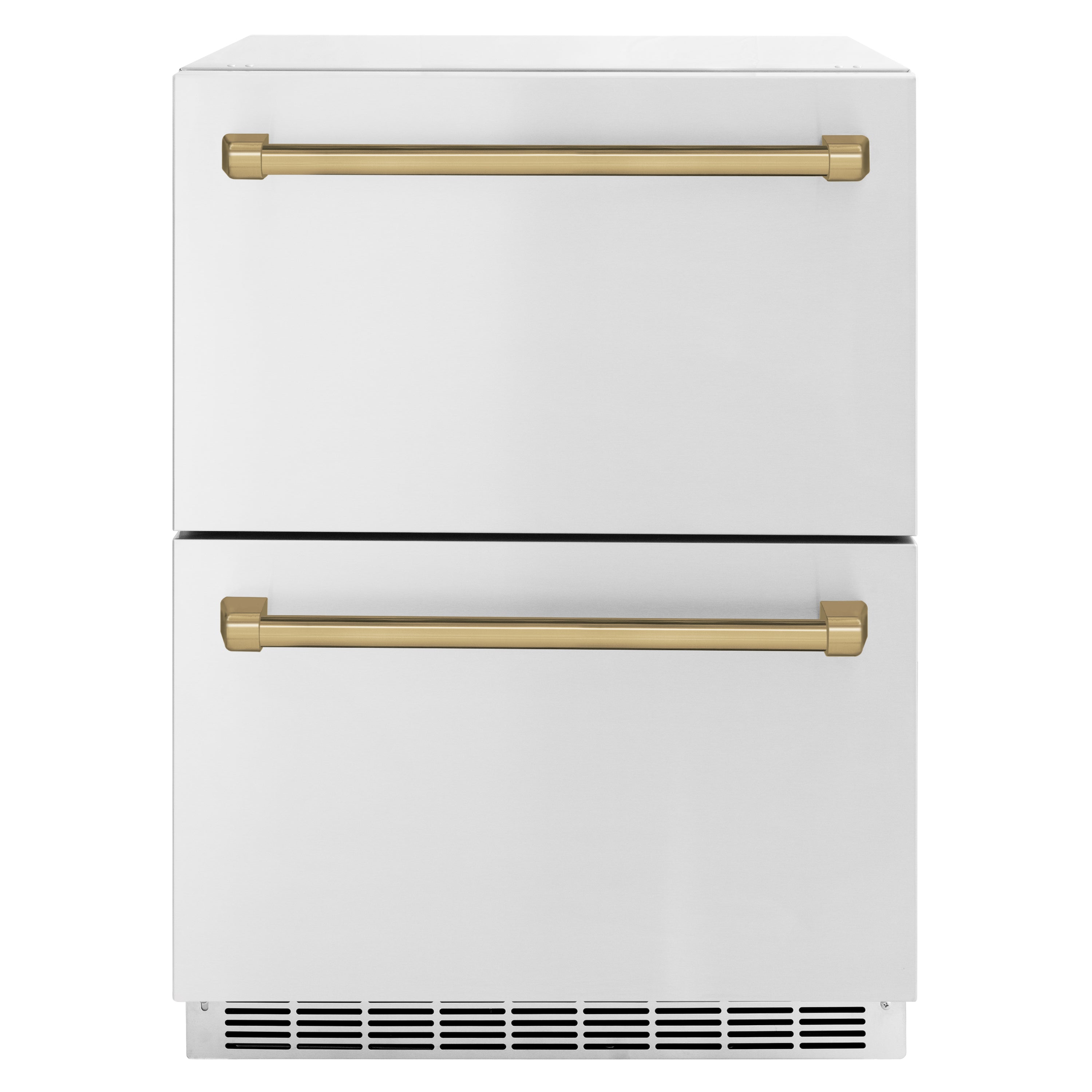 ZLINE Autograph Edition 24 in. Touchstone 168 Can Outdoor-Rated Dual Refrigerator Drawer with Stainless Steel Doors and Champagne Bronze Handles (RDSOZ-ST-24-CB)