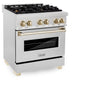 ZLINE Autograph Edition 30 in. 4.0 cu. ft. Legacy Dual Fuel Range with 4 Burner Gas Cooktop and Electric Convection Oven in Satin Stainless Steel and Polished Gold Accents (RASZ-SN-30-G)
