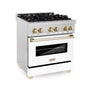 ZLINE Autograph Edition 30 in. 4.0 cu. ft. Legacy Dual Fuel Range with 4 Burner Gas Cooktop and Electric Convection Oven in Satin Stainless Steel with White Matte Door and Polished Gold Accents (RASZ-WM-30-G)