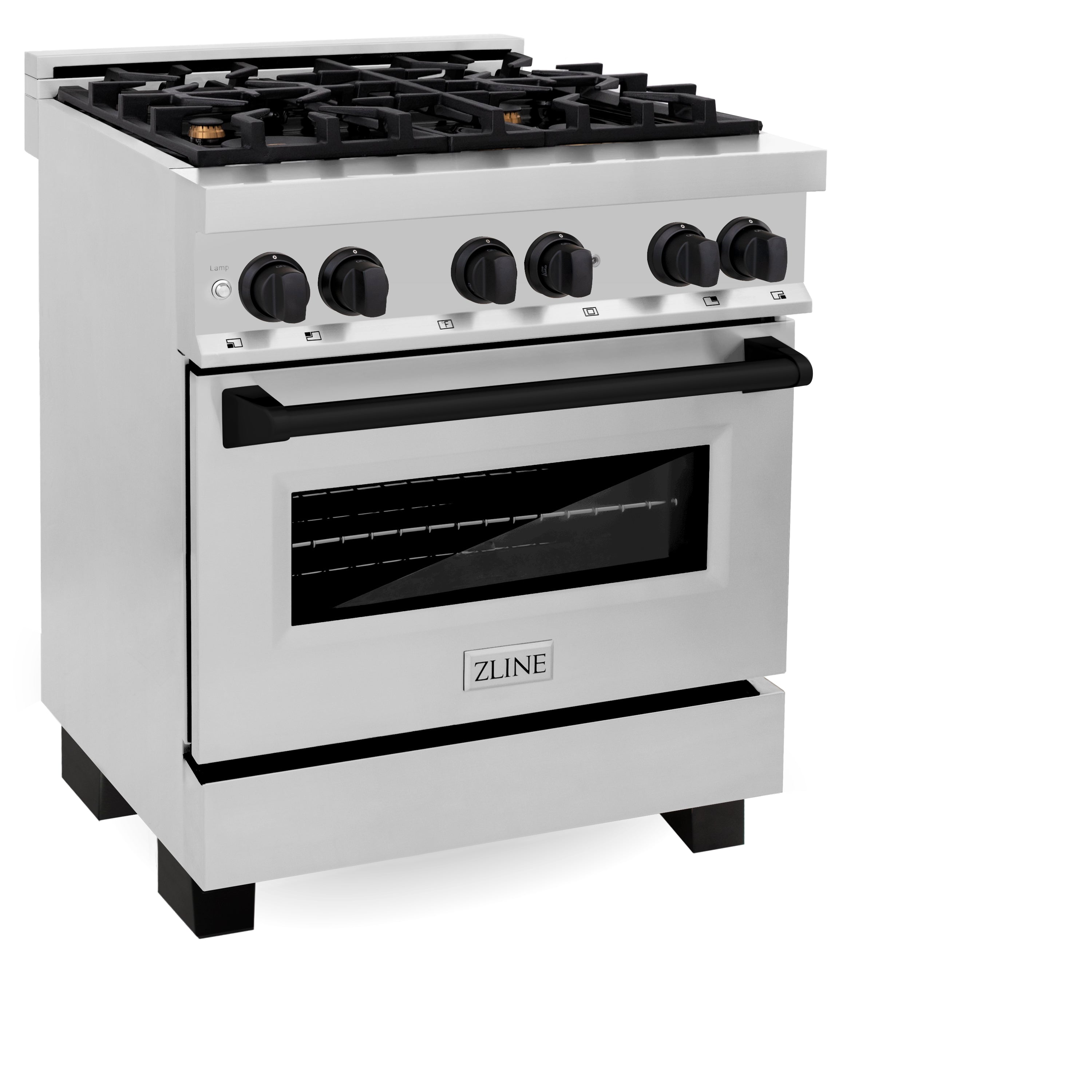 ZLINE Autograph Edition 30 in. 4.0 cu. ft. Legacy Dual Fuel Range with 4 Burner Gas Cooktop and Electric Convection Oven in Stainless Steel and Matte Black Accents (RAZ-30-MB)