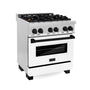 ZLINE Autograph Edition 30 in. 4.0 cu. ft. Legacy Dual Fuel Range with 4 Burner Gas Cooktop and Electric Convection Oven in Stainless Steel with White Matte Door and Matte Black Accents (RAZ-WM-30-MB)