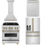 ZLINE Autograph Edition 30 in. Kitchen Package with Stainless Steel Dual Fuel Range, Range Hood, Dishwasher, and Refrigerator with External Water Dispenser with Champagne Bronze Accents (4AKPR-RARHDWM30-CB)