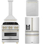 ZLINE Autograph Edition 30 in. Kitchen Package with Stainless Steel Dual Fuel Range, Range Hood, Dishwasher, and Refrigerator with External Water Dispenser with Polished Gold Accents (4AKPR-RARHDWM30-G)