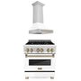 ZLINE Autograph Edition 30 in. Kitchen Package with Stainless Steel Dual Fuel Range with White Matte Door and Range Hood with Champagne Bronze Accents (2AKP-RAWMRH30-CB)