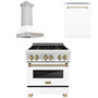 ZLINE Autograph Edition 30 in. Kitchen Package with Stainless Steel Dual Fuel Range with White Matte Door, Range Hood and Dishwasher with Champagne Bronze Accents (3AKP-RAWMRHDWM30-CB)