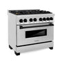 ZLINE Autograph Edition 36 in. 4.6 cu. ft. Legacy Dual Fuel Range with 6 Burner Gas Cooktop and Electric Convection Oven in Stainless Steel and Matte Black Accents (RAZ-36-MB)