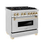 ZLINE Autograph Edition 36 in. 4.6 cu. ft. Legacy Dual Fuel Range with 6 Burner Gas Cooktop and Electric Convection Oven in Stainless Steel and Polished Gold Accents (RAZ-36-G)