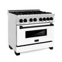 ZLINE Autograph Edition 36 in. 4.6 cu. ft. Legacy Dual Fuel Range with 6 Burner Gas Cooktop and Electric Convection Oven in Stainless Steel with White Matte Door and Matte Black Accents (RAZ-WM-36-MB)