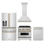 ZLINE Autograph Edition 36 in. Kitchen Package with Stainless Steel Dual Fuel Range, Range Hood, Dishwasher and Refrigeration Including External Water Dispenser with Champagne Bronze Accents (4AKPR-RARHDWM36-CB)