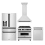 ZLINE Autograph Edition 36 in. Kitchen Package with Stainless Steel Dual Fuel Range, Range Hood, Dishwasher and Refrigeration Including External Water Dispenser with Matte Black Accents (4AKPR-RARHDWM36-MB)