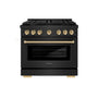 ZLINE Autograph Edition 36 in. 5.2 cu. ft. Paramount Dual Fuel Range with 6 Burner Gas Cooktop and Electric Convection Oven in Black Stainless Steel with Polished Gold Accents (SDRBZ-36-G)