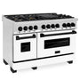 ZLINE Autograph Edition 48 in. 6.0 cu. ft. Legacy Dual Fuel Range with 7 Burner Gas Cooktop and 2 Electric Ovens in Stainless Steel with White Matte Doors and Matte Black Accents (RAZ-WM-48-MB)